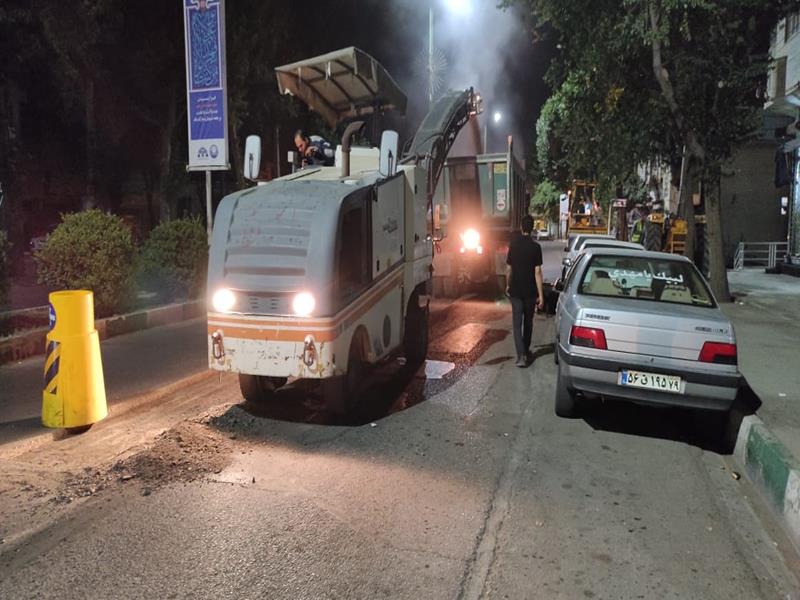 اتمام تراش و مرمت روکش آسفالت دربلوار شهید بهشتی تقاطع ولیعصر(عج)
