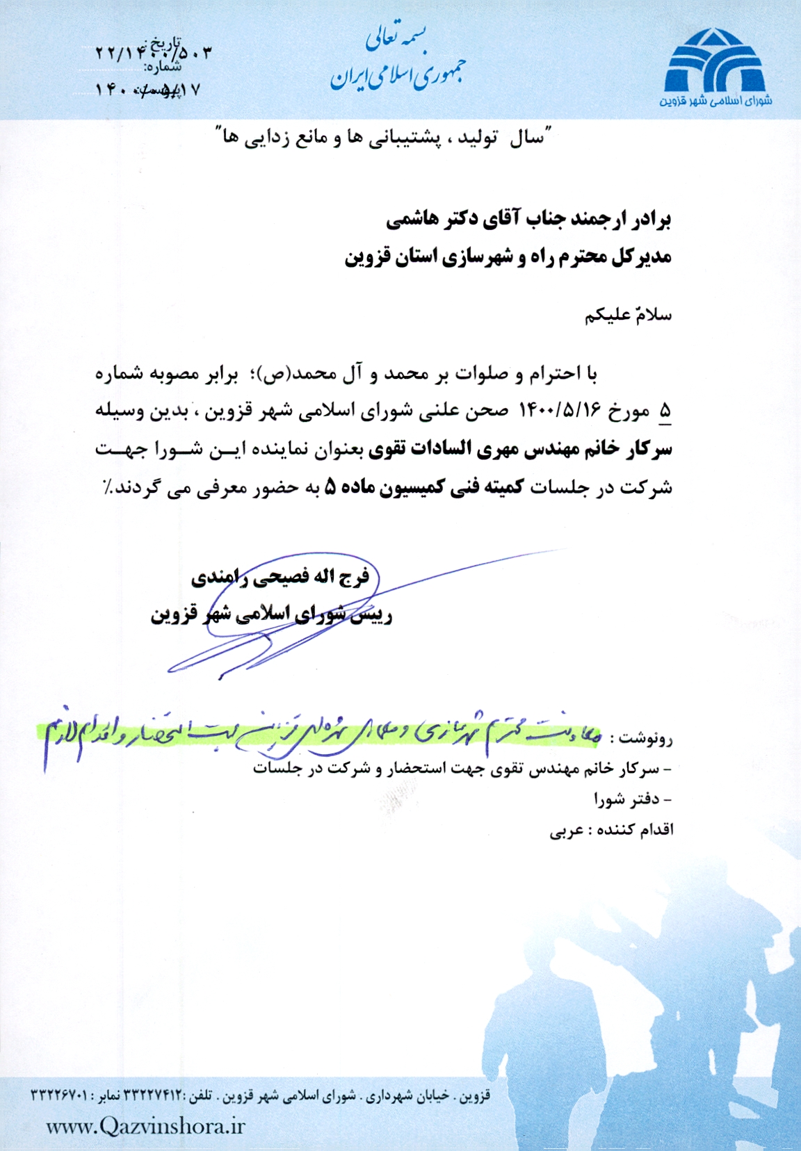 | | معرفی سرکار خانم تقوی در کمیسون ماده 5مصوبه 5 | |